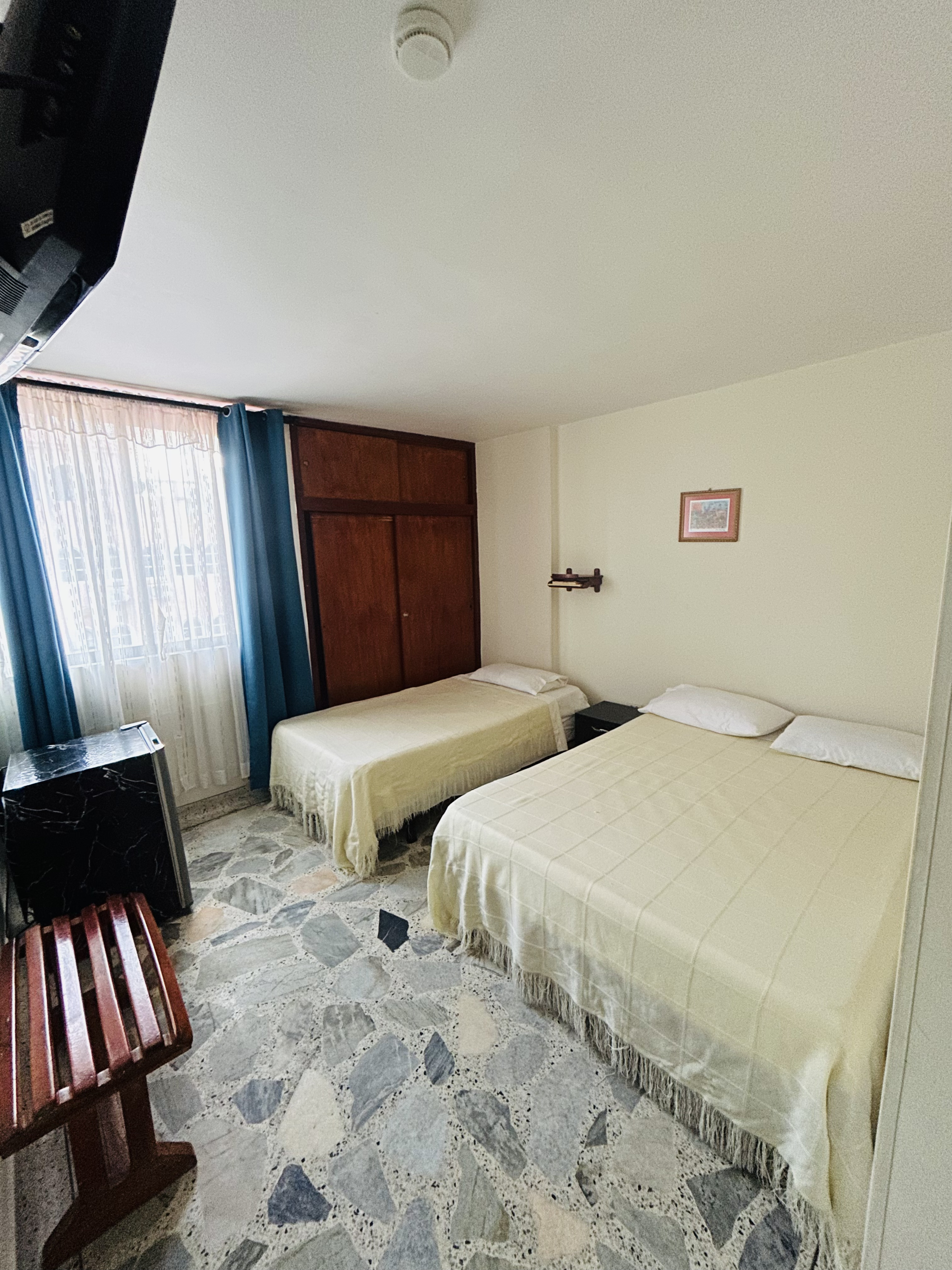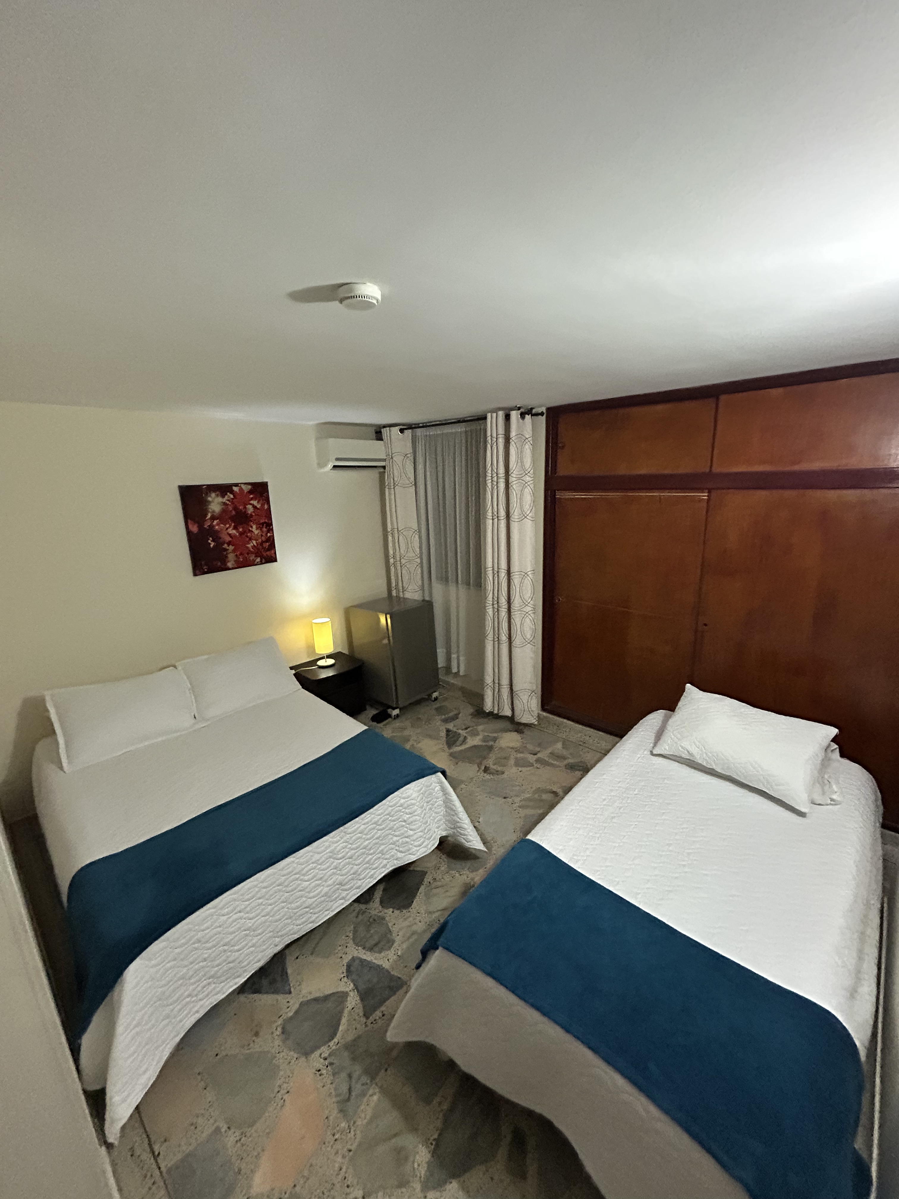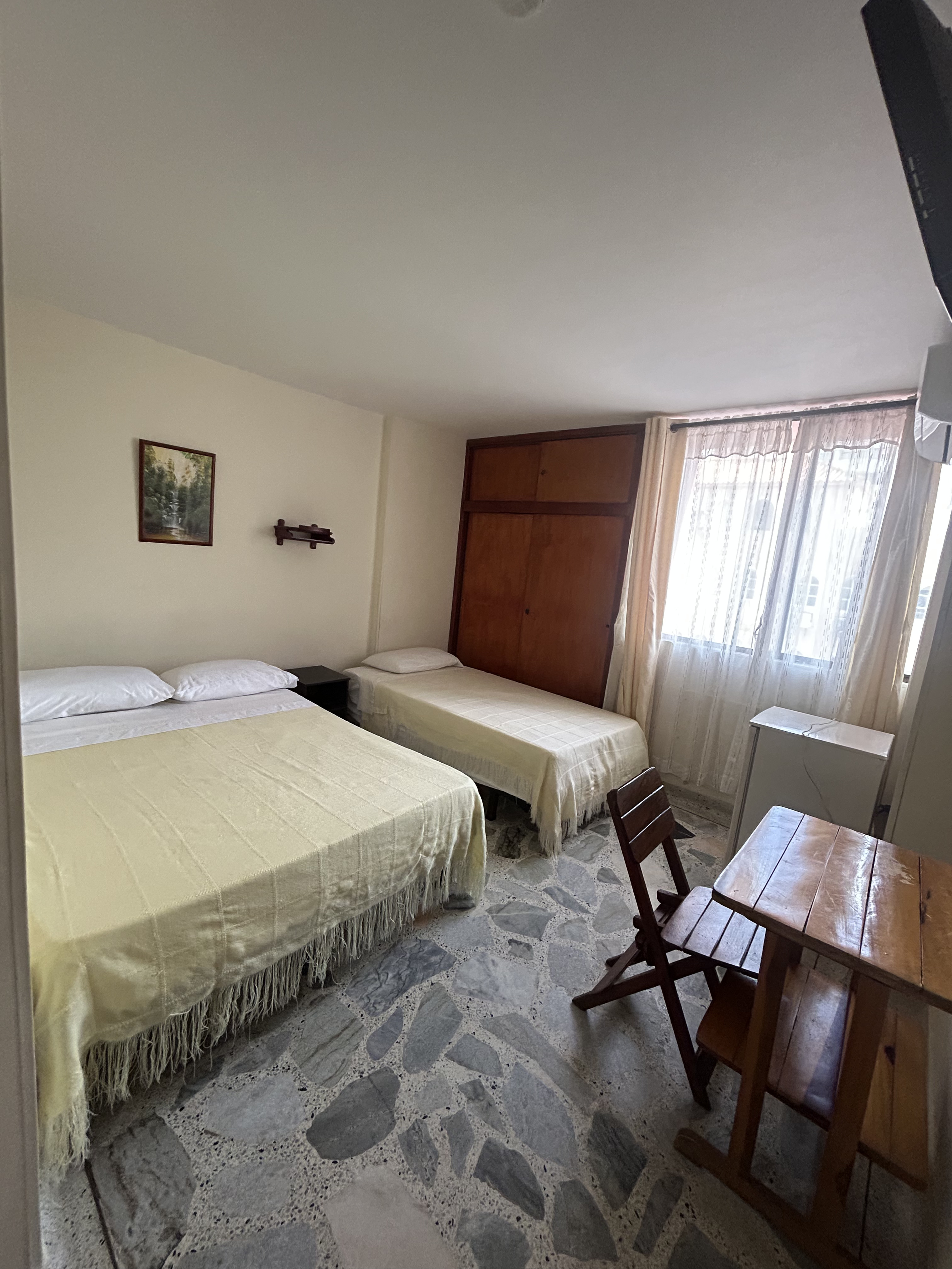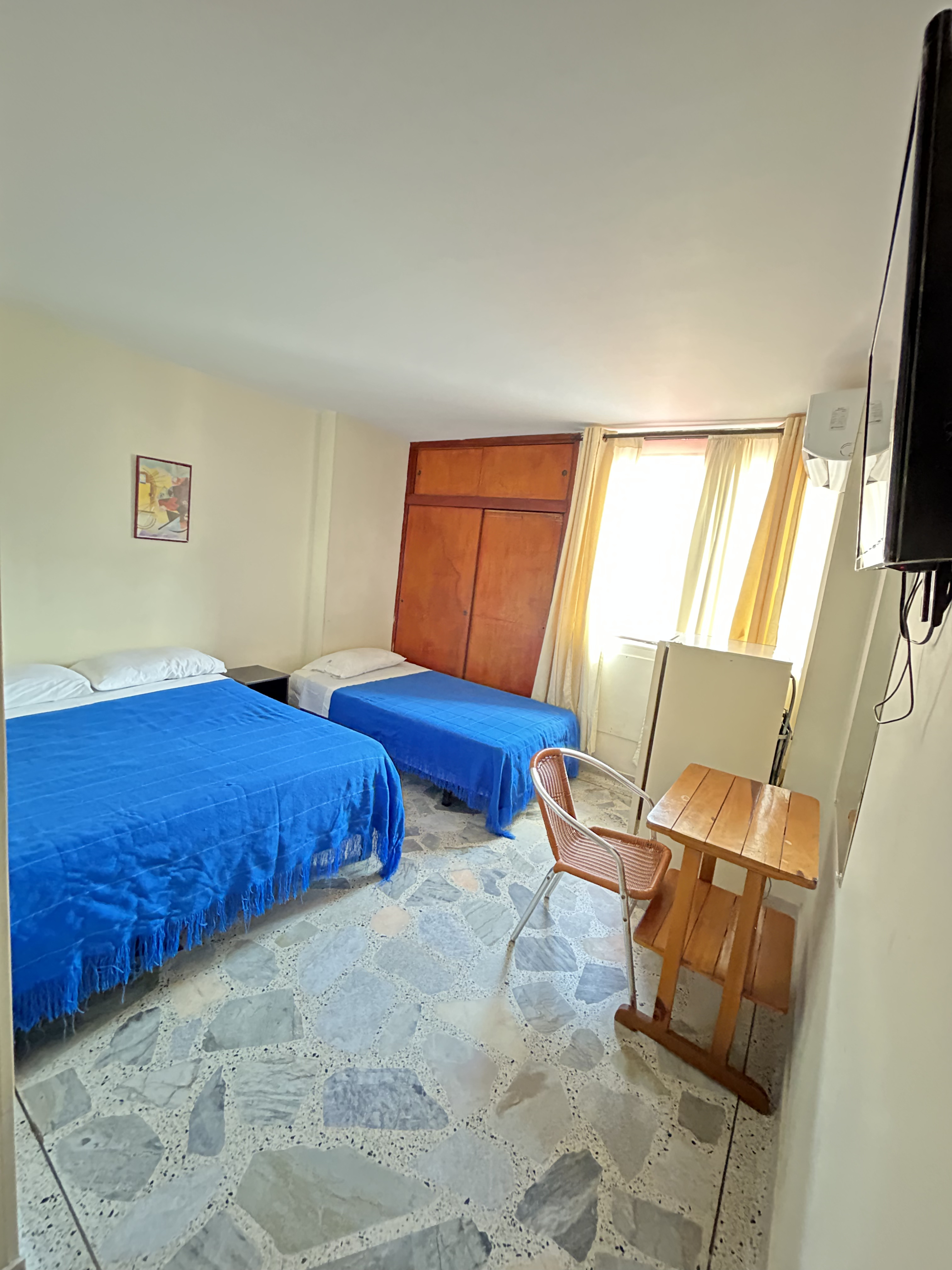 Más fotos Habitación Triple Habitación para tres personas con una cama doble, una sencilla y baño privado Desde: 285000 👥 Capacidad: 3 Wifi, nevera, aire acondicionado, escriorio y TV Consultar esta habitación por WhatsApp Anterior Siguiente